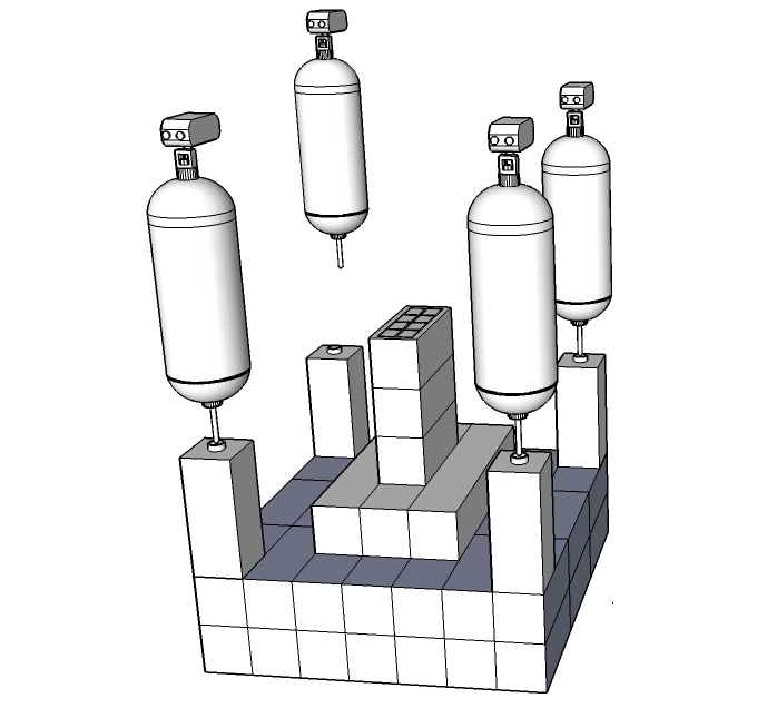 In this version, the hook-ups are moved to the corners and placed on towers. Submarines carry tanks of oil from the spillinator to the surface, where the oil is offloaded onto tanker ships. The submarines then carry the tanks back to the spillinator.