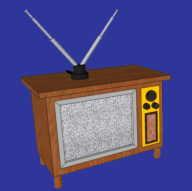 I hesitate to call this an ‘old fashioned’ TV set, because this is what I grew up with. This is, in fact, a rough approximation of what I watched the original Star Trek on when it was first broadcast. The control panel wasn’t yellow, though, but I don’t remember what it was, so yellow it is.