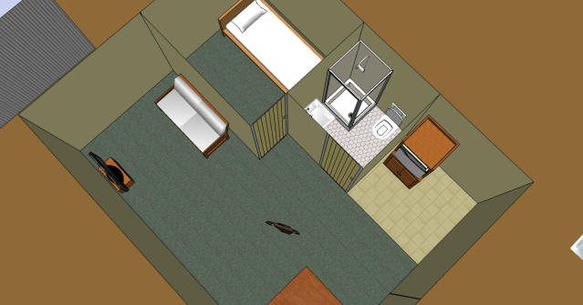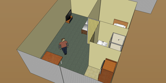 Google 3D Warehouse is an immense resource of free furnishings for your shipping container home layout. Here is where I ended up after playing for a couple of hours. It certainly looks nicer than my first feeble attempt at this, which was so embarrassing I’m not even going to link.