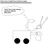 4. Sometimes it is good to re-invent the wheel. I tried to base the design for this ‘bot on my old shovelbot design, and there was no end to trouble. Shovelbot dated back to my pre-component days, and there were lots of flaws. One thing that really drove me nuts was that I couldn’t get the drawer to align with the face of the robot. I thought I was doing something wrong with the drawer, but it turned out that shovelbot had become slightly misaligned over the course of its short life. And that was only one problem among many. In the end, I probably could have saved a lot more time just by building a robot from scratch. Except the tires. Those are good.