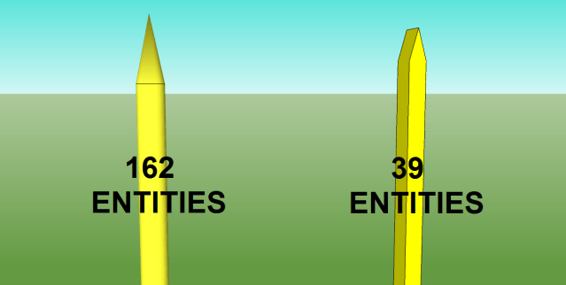 1. If you’re going to replicate a shape a hundred times, make sure that it has a low polygon count. Hence I redesigned the prong component from a cylinder to a rectangular profile and got the ‘entity’ count down appreciably. Sketchup was starting to get slow and jerky until I did that.