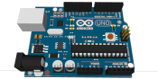 I made this drawing by first getting a picture of the Uno (from the Arduino site) and then modifying the image of the circuit board so that only the words appear. This made it a lot easier to accurately lay out the components, which I simply moved and resized from the old board.