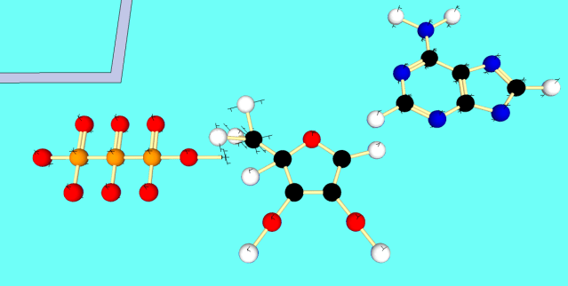 Welllll, I got all the atoms and bonds right, I think. Now the problem is the angles. Oh, and to be in the cool crowd, I’ll have to indicate somehow that the single-bonded oxygens on the phosphate chain are negatively charged.