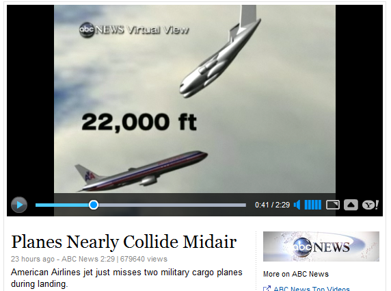 In the news this morning was a story about a near collision of a 777 American Airlines jetliner with a pair of US Air Force C-17 cargo planes. Here’s what the graphic looked like on ABC News: