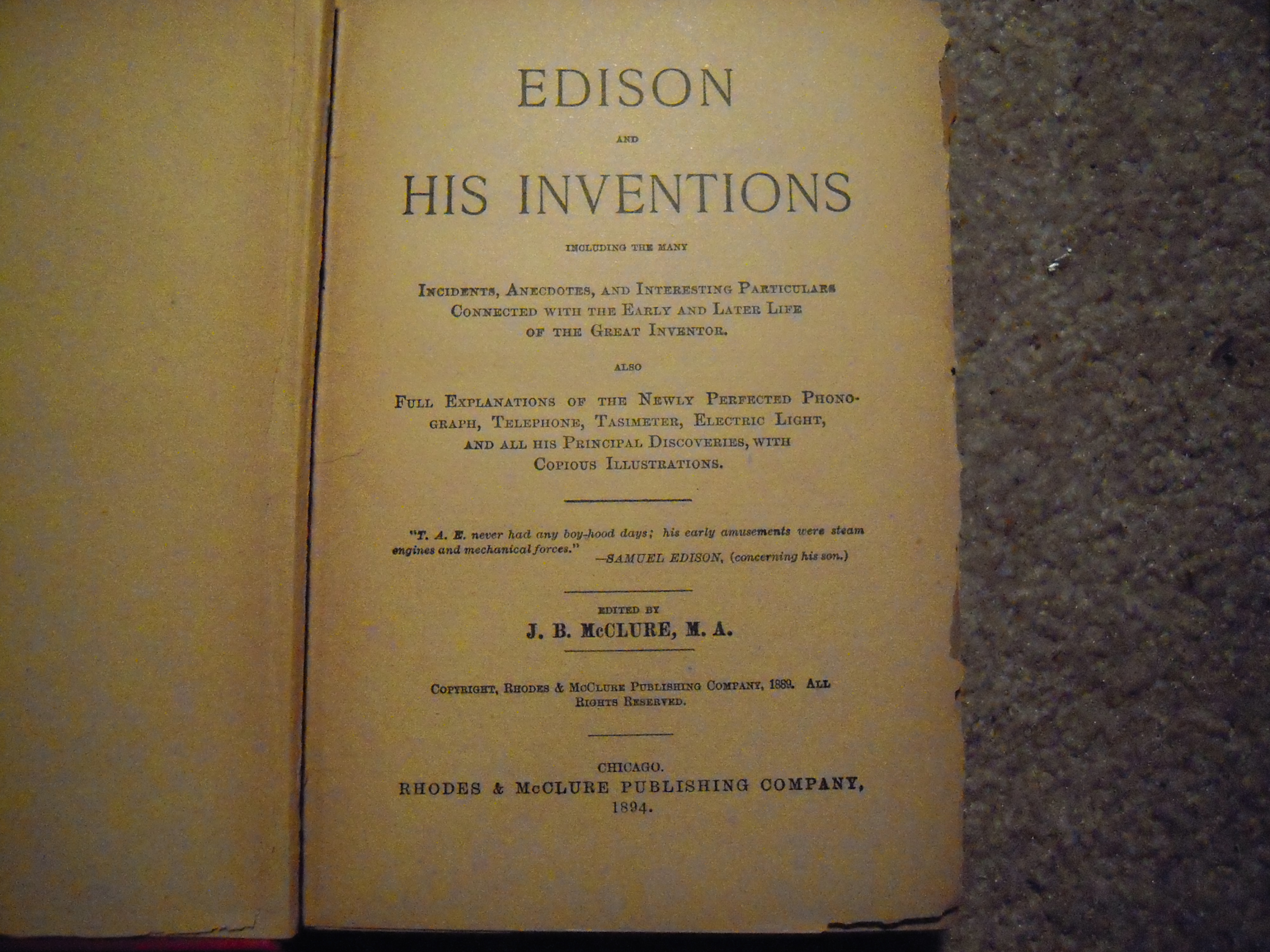 Well, to tell you the truth, there are some passages in this book that made me wonder whether the author wasn’t quite accurate in taking notes when he interviewed Edison, or maybe he didn’t interview Edison at all and just cobbled this book together from unattributed newspaper clippings from reporters who did talk to Edison but still weren’t quite accurate in taking notes — and may have committed a little ‘inventing’ of their own along the way.