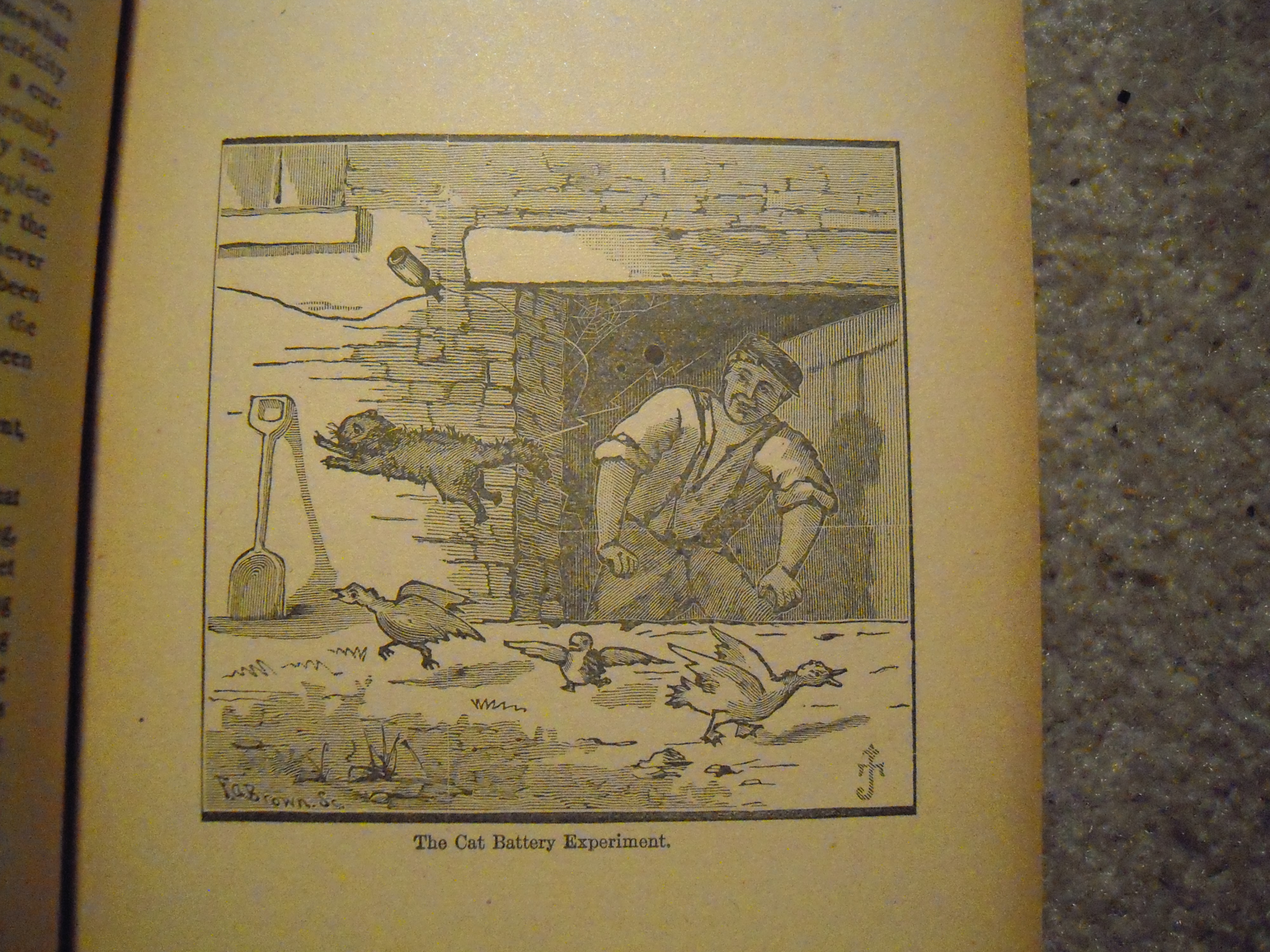 Edison, it seems, was quite the scamp as a child. He was always experimenting with things and causing mayhem with fires, explosions, etc. This did not ingratiate him with others, as we can see from these illustrations: