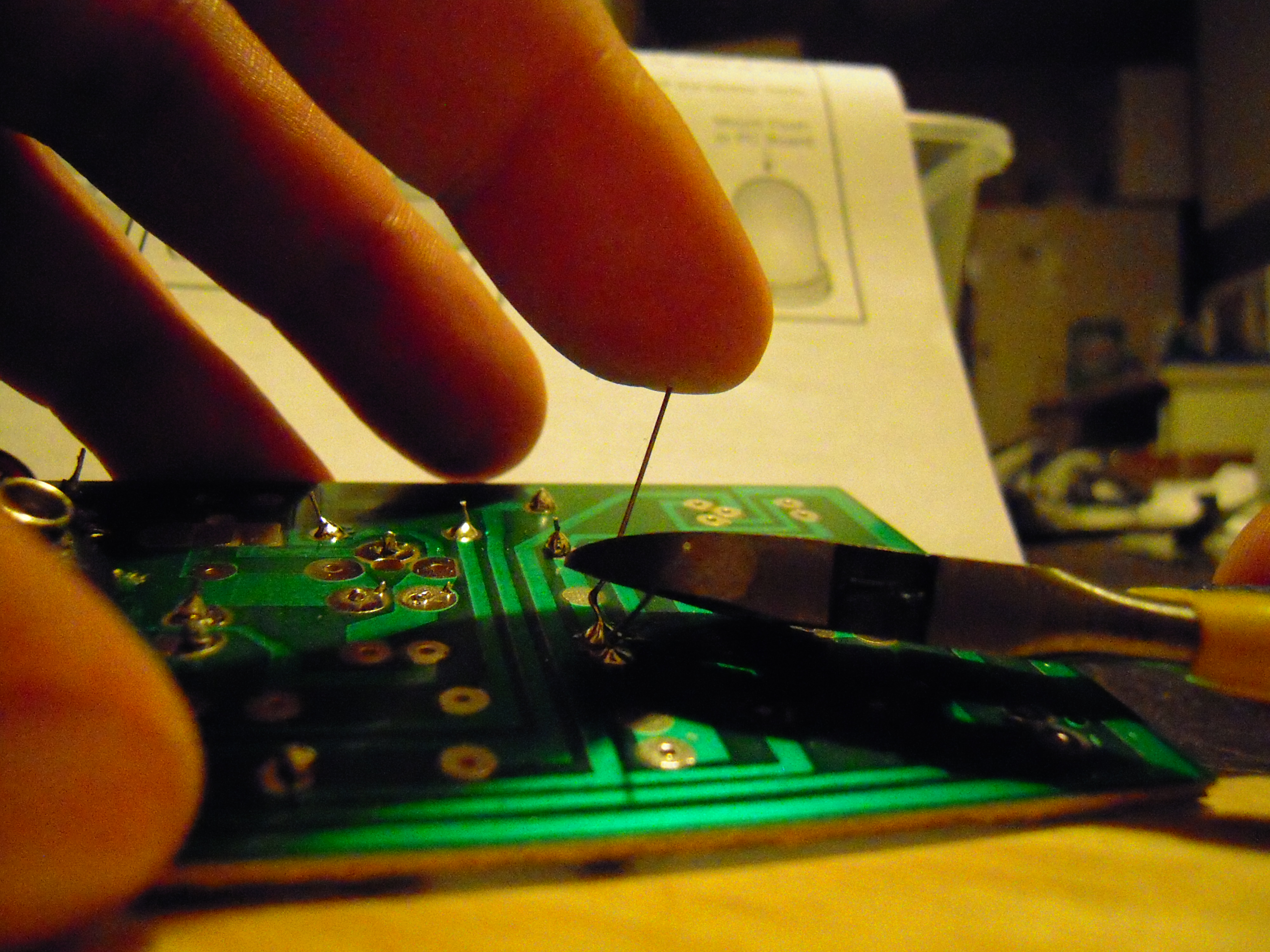 One tip I learned is that when clipping the component leads, lightly place a finger at the end. Otherwise, the clipped lead will go flying. One more reason to wear safety goggles!