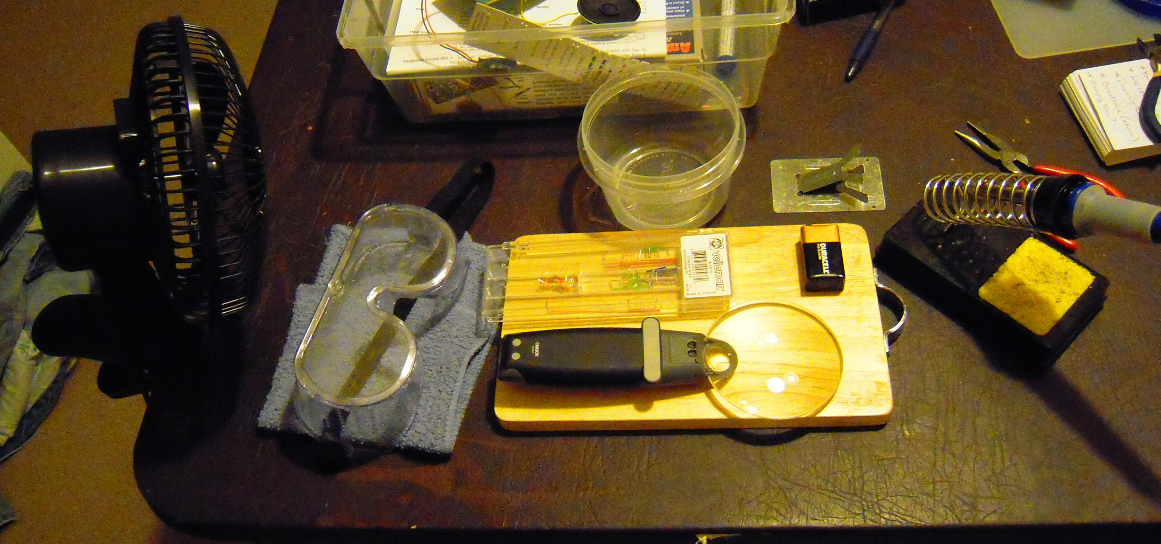 — something to keep a solder dripping from burning your table (this mini-chopping board cost $3 at Goodwill).