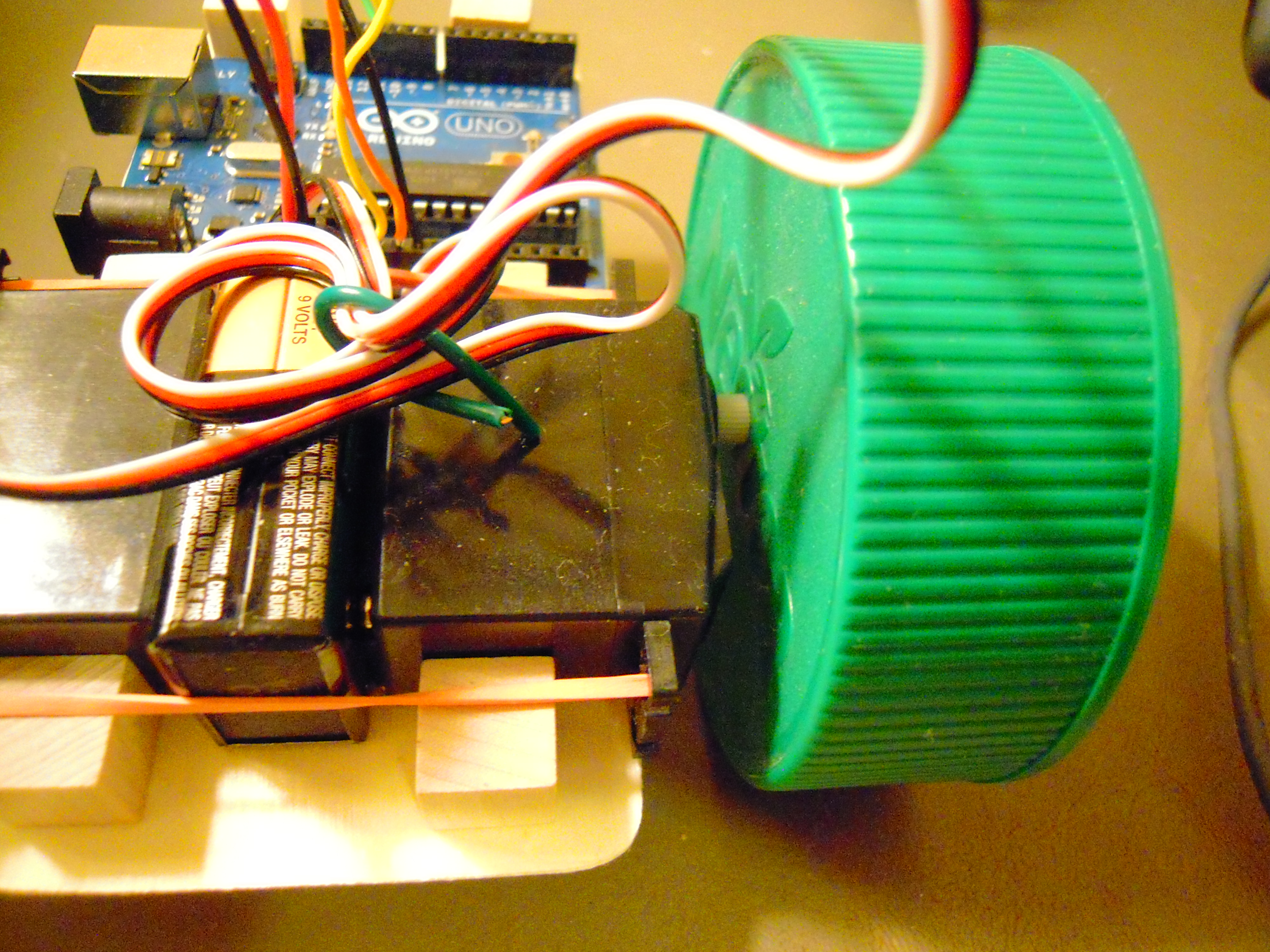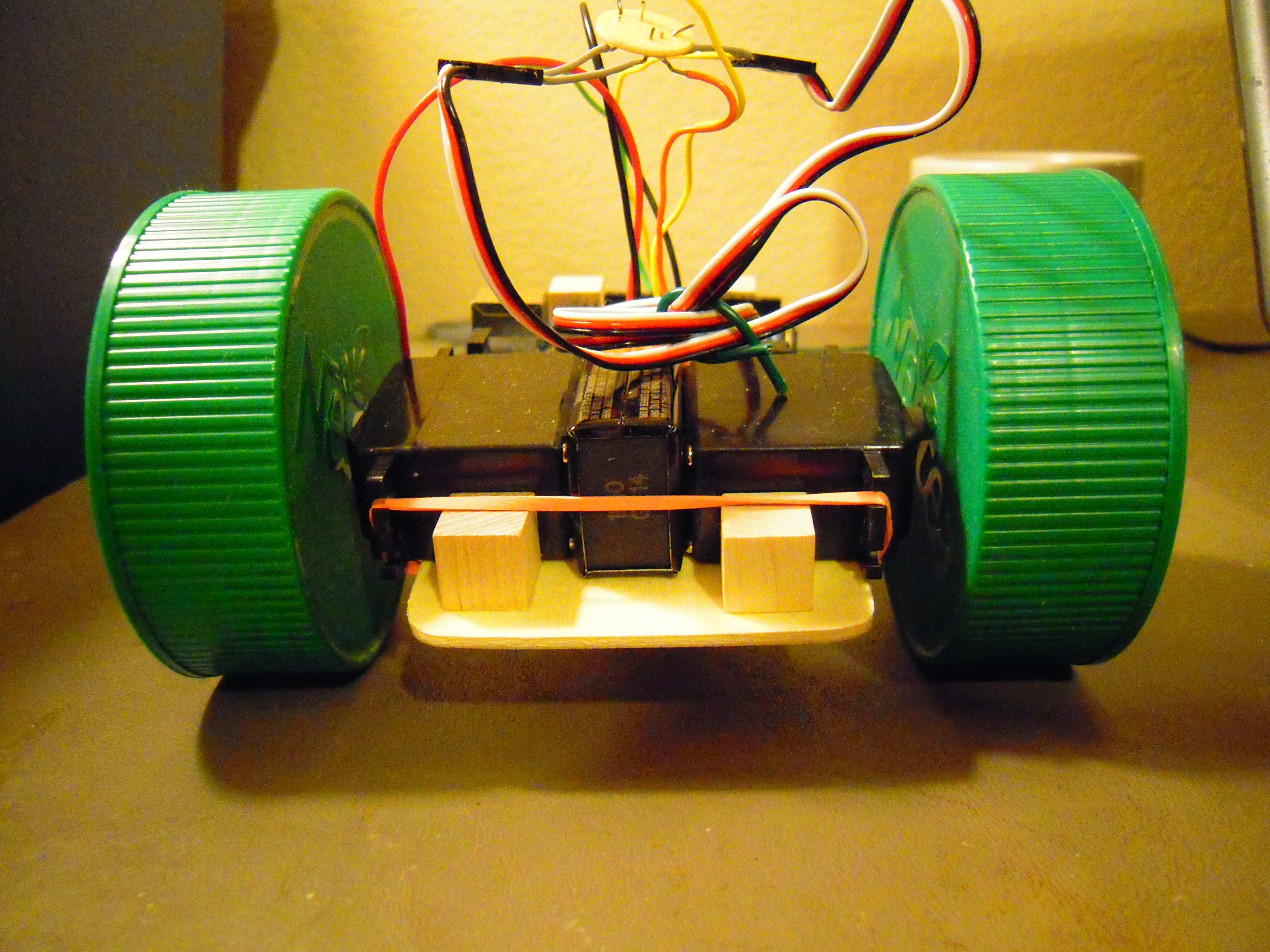 I’ve done some upgrades to my arduino robot. The change that seemed to help the most in the accuracy department was to upgrade the wheels. The potato chip container lids were kind of flimsy, so I replaced them with hard plastic iced tea jar lids.