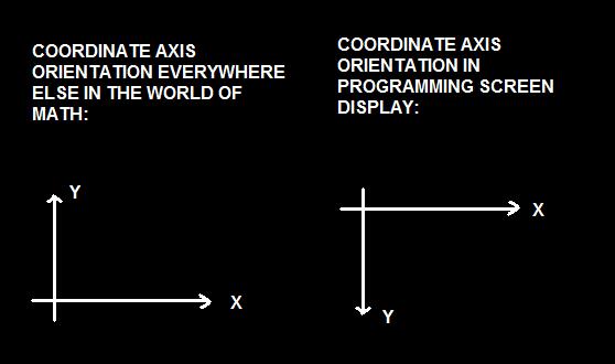 I knew this, but I forgot it yesterday when I was working on GIRC. This convention of inverting the y-axis for screen display isn’t peculiar to Processing, it’s common to many programming languages. There is a way to change the convention at the outset of a program, but I don’t know if I want to mess with that.