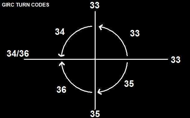 If the turn is greater than ninety degrees, the first control code changes and the second control code is the value of the turn less 90 plus 33, or less 57.