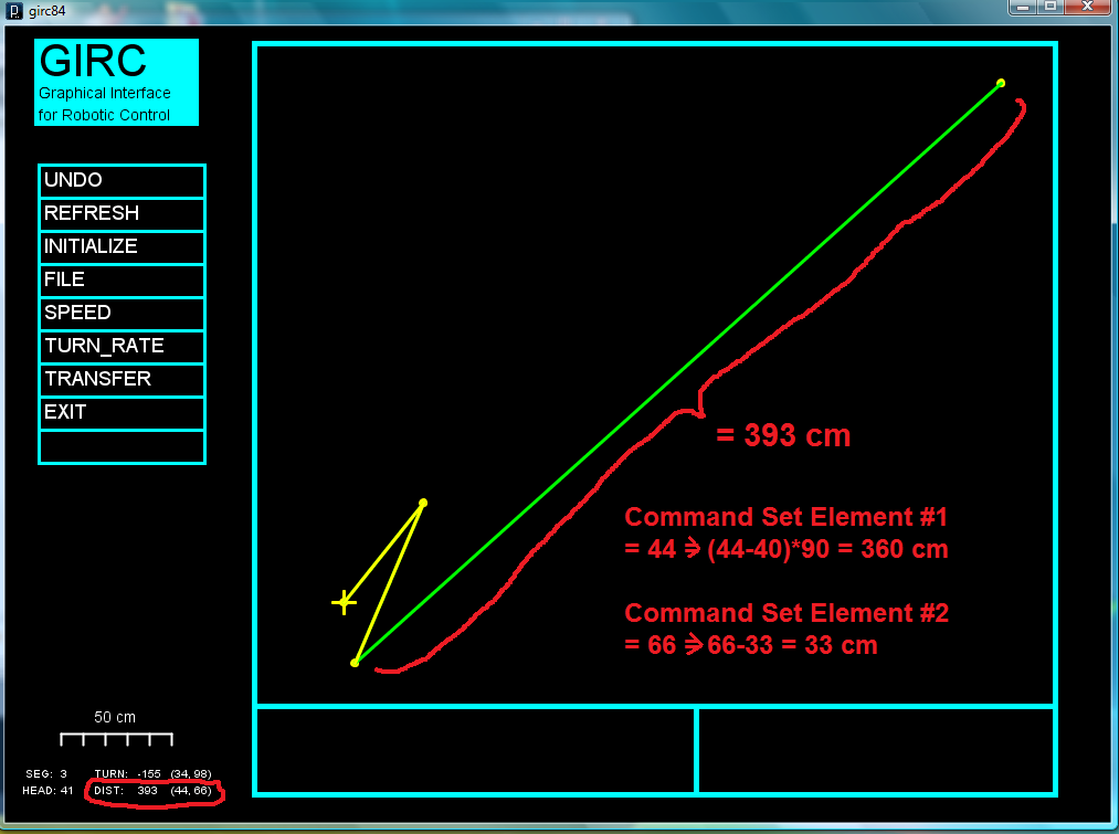 So I do all the heavy math in the computer and then encode the path/segment turn-and-move data into a format of a series of bytes ranging in value from 33 to 127. The convoluted but simple arithmetic can then be done by the microcontroller to convert back to the actual turns and moves.
