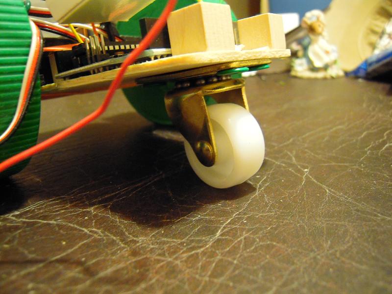 Unlike the steel caster, which could easily be thumbtacked to a prototype wooden chassis, the plastic ball will require drilling in order to be affixed to its chassis. So that’s where I’m heading next.