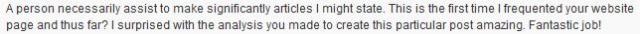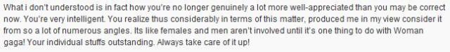 Bear in mind that spam bots attack blogs because they want their comment published with its embedded link that will help the spammer promote his product. Since spam is scattered as widely as possible, spam comments are as general as possible and typically lack references to the actual content of the blog entry. But that doesn’t mean they don’t get creative in their endeavors to entice you the blogger to publish their comment, and it’s the extremes they’ll go to that I find so appealing, even amusing.