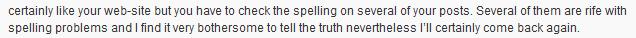 Some of the spam bot programmers have concluded that being positive is what catches them, so they try to simulate a realistic comment by inserting criticism: