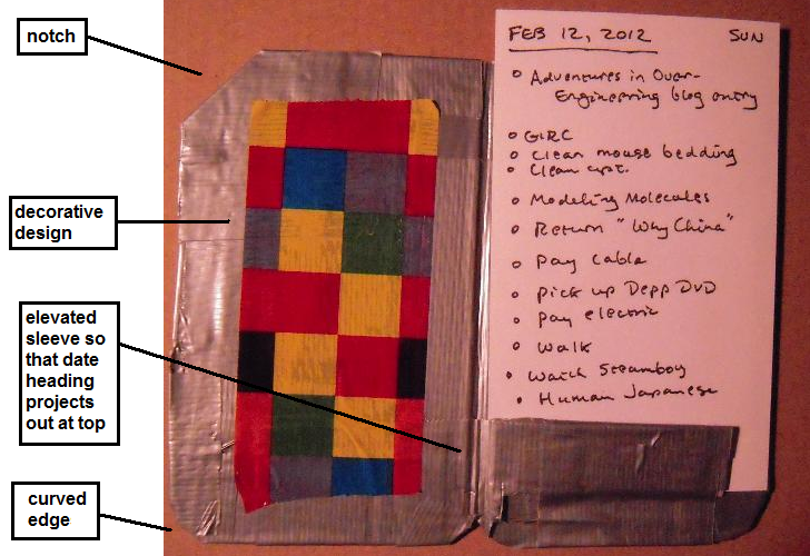 The problem: I keep losing my daily do lists in all the clutter of my life. So I thought, I needed a do list holder. And there’s no project, big or small, that can’t be over-engineered. Of course, it will involve lots of duct tape.