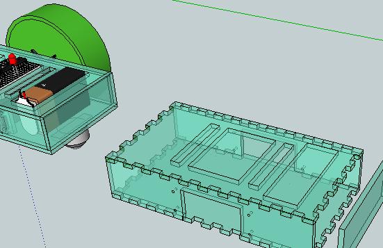 As you can see in the above illustration, I’m adapting my Sketchup design of an acrylic robot casing to add crenelations so that it can be glued. I’m still partial to just bolting the sides together, but I wanted to explore the options.