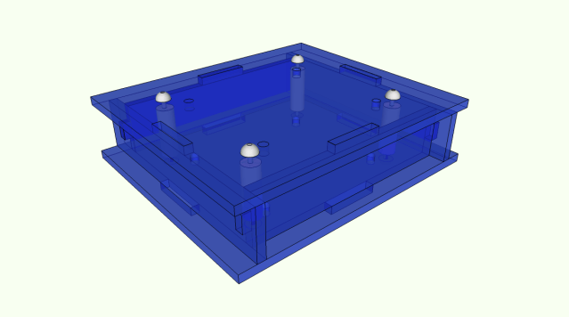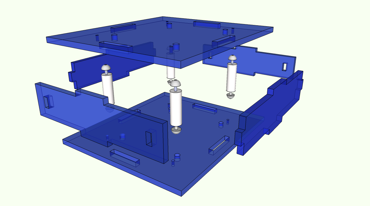 Before I try to cut for an entire robot, I thought I’d try a ‘test box.’ This is an object that has no functional value, but will give me an idea of how slots and tabs fit together in laser-cut acrylic, what size holes I need for the standoffs, etc.