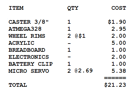 How much do the materials of the robot cost?