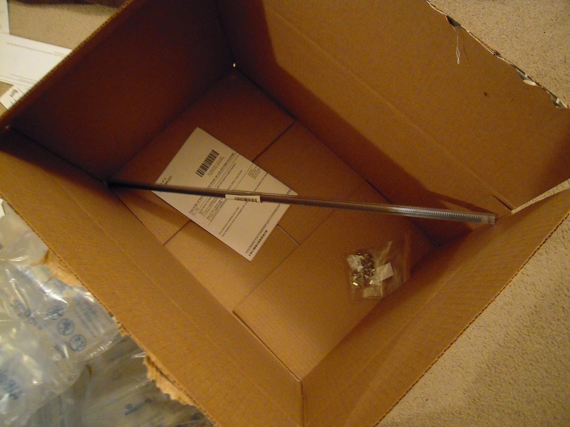 And these are the contents. Apparently Amazon doesn’t have shipping tubes long enough for one of the two items, so they stuck it diagonally into a box big enough to fit. Never mind that 99.6% of the interior was empty. (Yes, I measured and calculated).