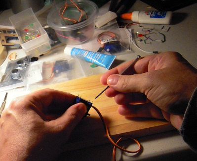I calculate that in order to stay afloat businesswise I’ll need to assemble at least twenty kits a day, and that’s not going to work if I take half an hour to convert each servo. So there is room for improvement. But you learn by doing, and this was only the first hour of my assembly line experience.