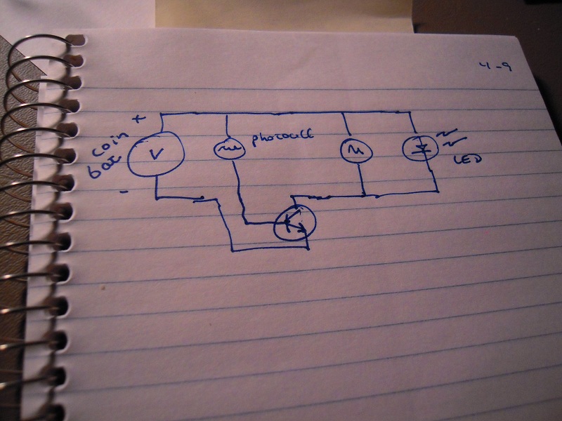 As for the photocell, it does not permit enough current to run the motor, even in the brightest light. So I made a design to include a transistor as amplifier:
