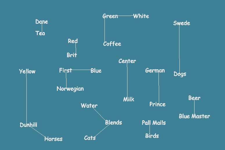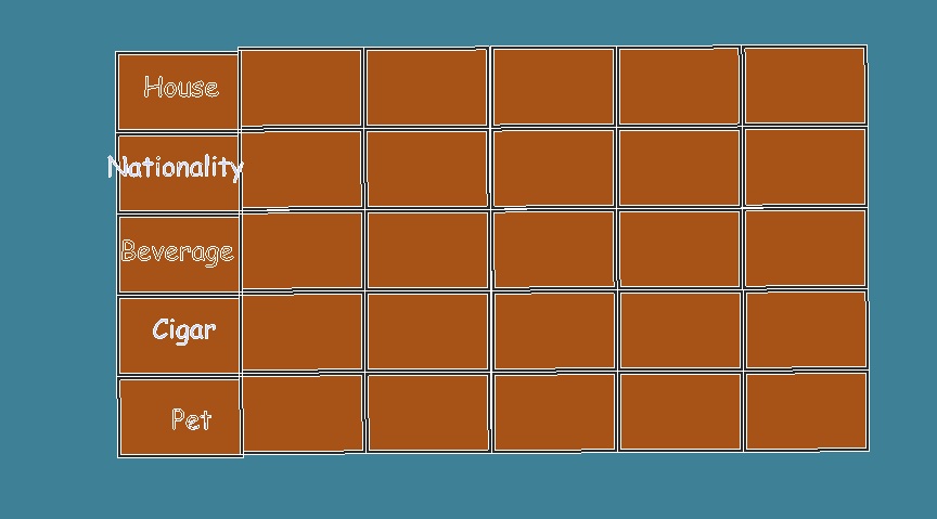 Perhaps you’re familiar with those logic puzzles where five people live next to each other and have different traits, and you’re given seemingly unrelated clues and asked to figure who has what.