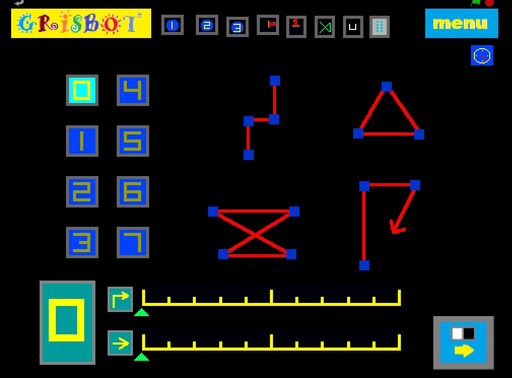 The idea behind free-form mode is that a user can design her own path, say on a sheet of paper, and then program the robot accordingly. Consequently, the programming page simply shows the waypoint icons lined up in rows and columns on the left, and on the right are some examples of paths that one might make.