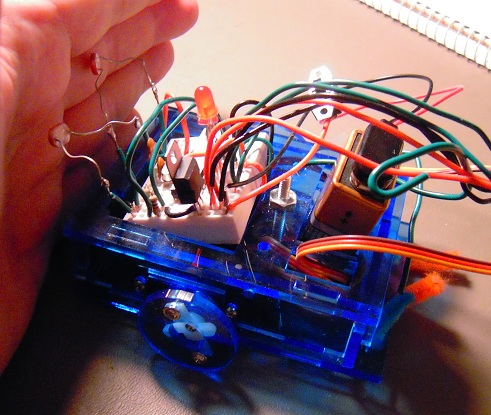 Now, Grisbot automatically stores programmed data into EEPROM for multiple playback, but when you turn it on again, it won’t automatically go into playback mode. To make it go into playback mode, cover the photocells. The low light reading will trigger playback mode and grisbot will commence operations on data stored in EEPROM rather than having to re-read data flashed from the screen.