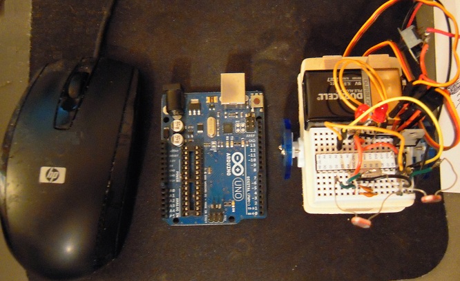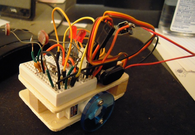 This is basically a wood and glue robot, but it’s sturdy enough for running around a tabletop and that’s what counts.