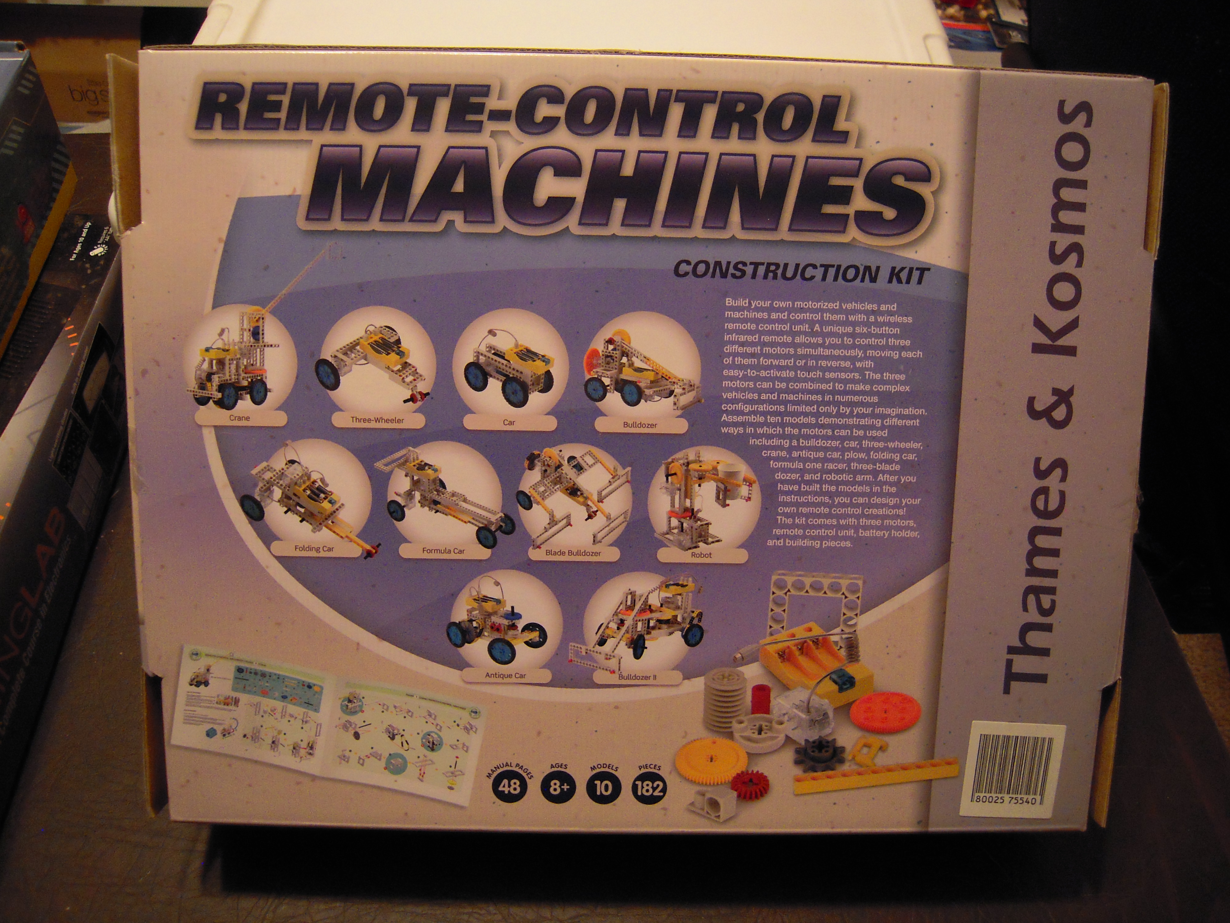 As you can see from the back of the box, it has quite a few projects that have a Lego-y feel to them, with the twist of being remotely controlled (by infrared):