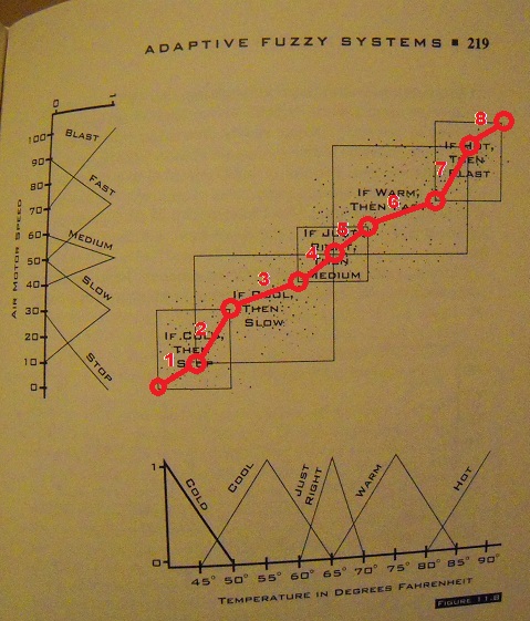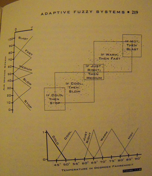 The problem is that while he went into considerable depth over the philosophy of fuzzy logic, there’s only one specific example of a practical application that stands out, and that is for a fan whose speed is adjusted depending on the temperature. I agree that it’s better to adjust the fan speed variably rather than have it turn on or off at a specific temperature. What I don’t get is why we have to create an entire philosophical and mathematical framework to do something that can be addressed with a series of linear equations embedded within a case-switch statement.