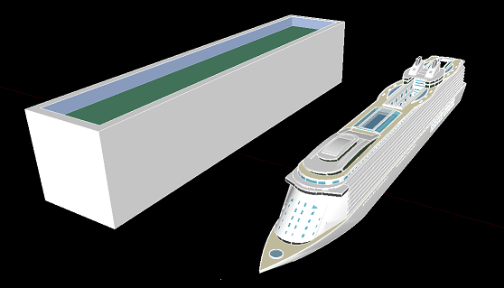 Finally, let’s keep space colony design modular. Even the biggest space colonies should be constructed out of modules no larger than a cruise ship. Why? Because we have experience building something of that size. Thus here is what a single colony module would roughly look like in size and shape compared to a large cruise liner: