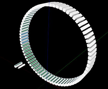 A complete ring would consist of 72 modules, which would be far enough apart that in the event of a crisis they could easily break free of the ring. And thus the complete colony would look like so: