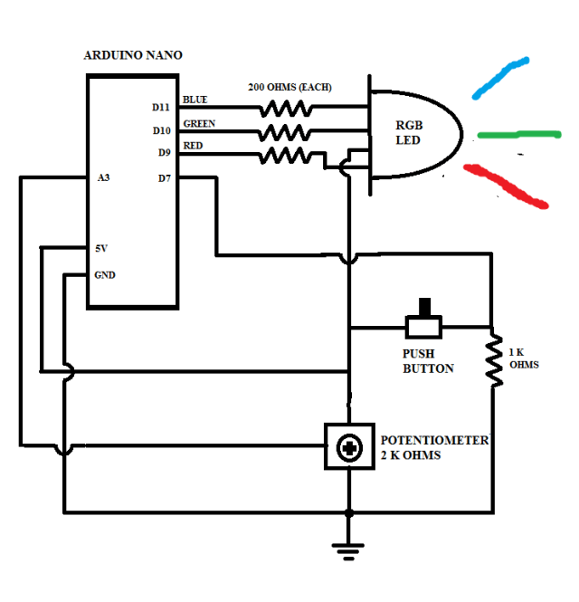 1 Response to Beyond the Blink: RGB LED multiple lighting effects with arduino, push button, and potentiometer